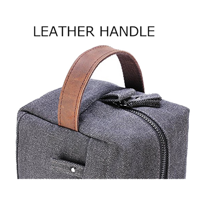 Borsa impermeabile dell'articolo da toeletta della tela durevole per gli uomini con la maniglia di cuoio